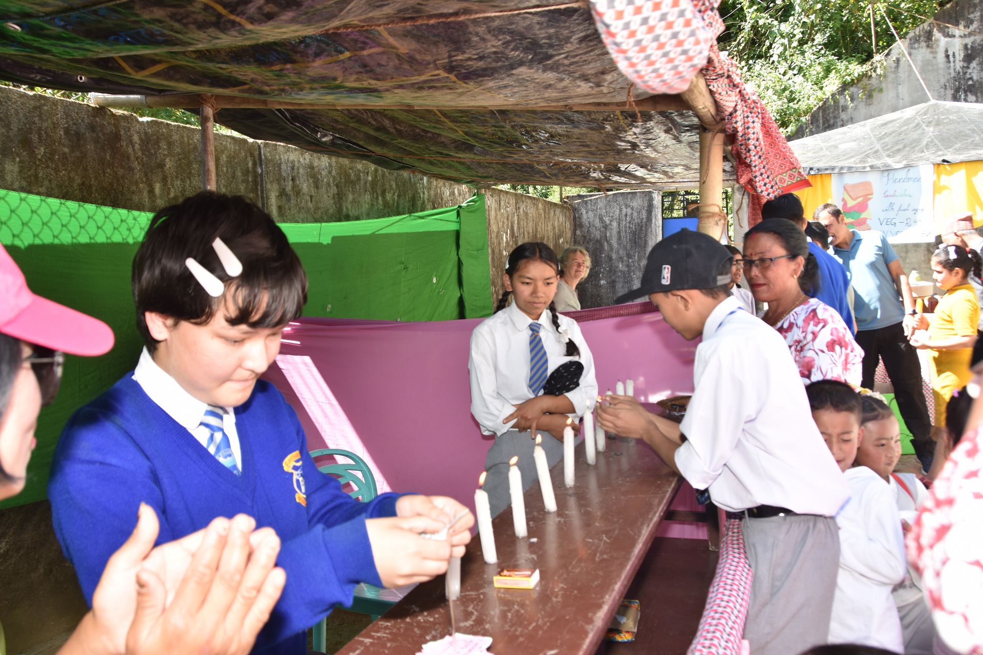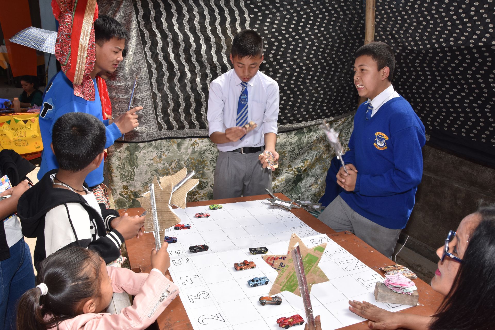 The following day, the school festival took place in glorious weather. A diverse program was offered: visitors could test their skills at numerous game booths or try their luck to win small prizes. Delicious treats, prepared and sold by the teachers, were also available. The proceeds from the school festival will be used to organize a large celebration for World Children’s Day.